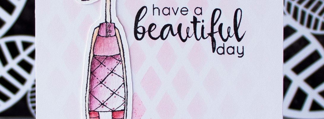 I always struggle with backgrounds. I wanted something subtle but also a little bit special and knew this could be achieved with Ranger Perfect Pearls. I first stamped the background using My Favorite Things ‘Denim’ stamp with the sticky ink that comes with the Perfect Pearls (you can also use Versamark). I then dusted the Perfect Pearls over the top, brushed the excess off and misted it lightly with water to set the Perfect Pearls.