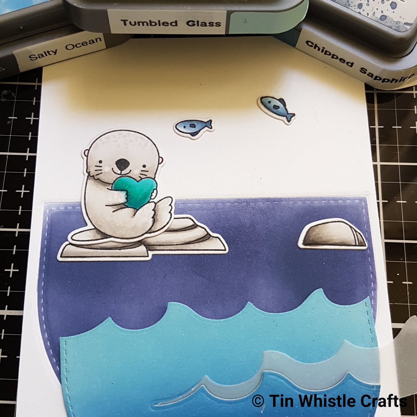 - Adhere panel to coloured cardstock with double sided tape.