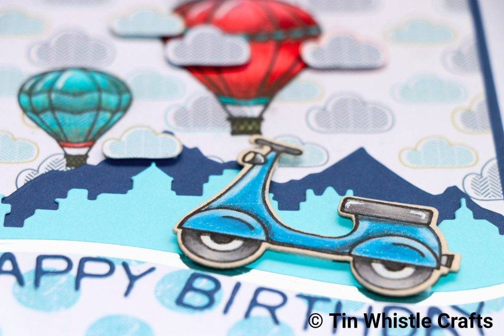• I stamped the sign and scooter onto Clairefontaine Paint’ON Naturel coloured cardstock as had decided to use Prismacolor pencils for my colouring.