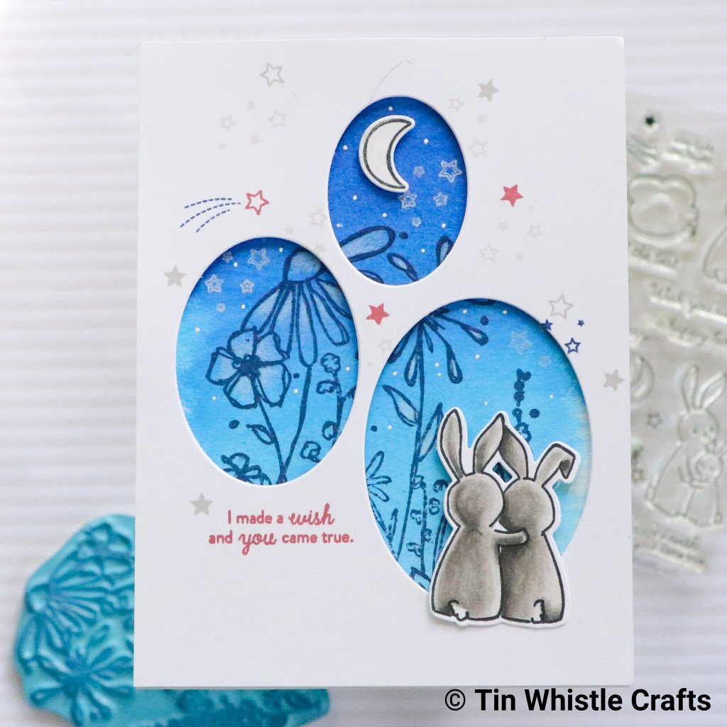 - I simply stamped the bunnies and moon from the Wplus9 Wishing You set onto copic friendly cardstock, coloured and die cut with matching dies.