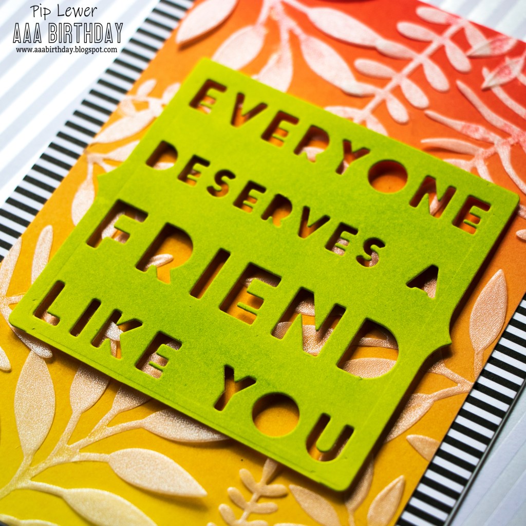 I really love how this card turned out and I hope this has inspired you to join the AAA Birthday Challenge for this month. Looking forward to seeing your creations,