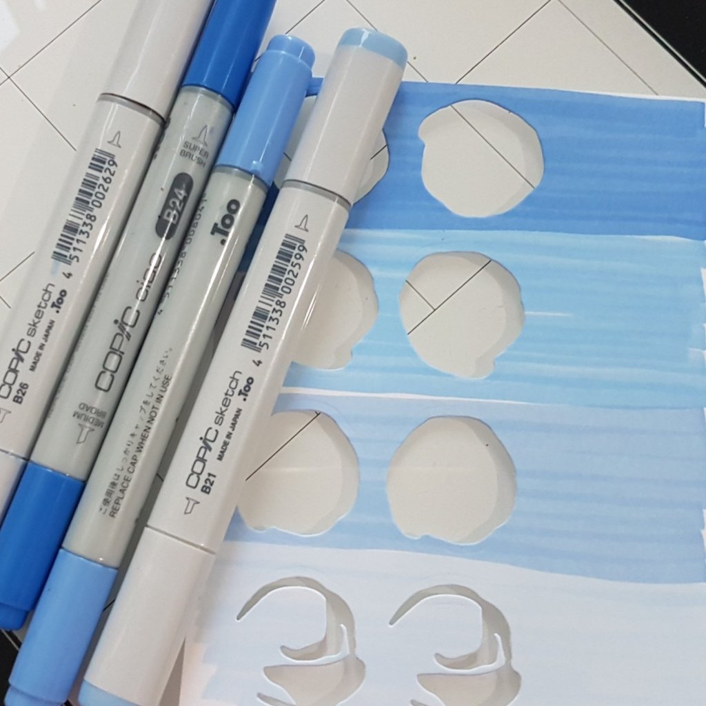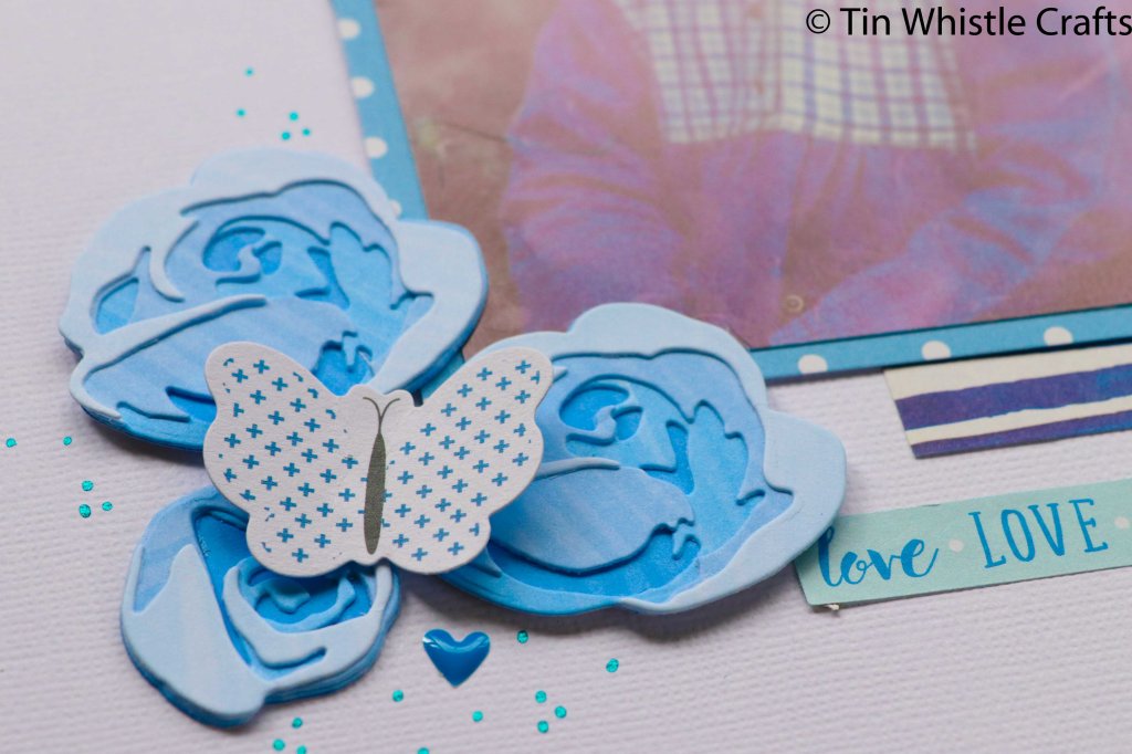 I used the Altenew Rose flurries 3D die set to make the flowers. I needed to have four different shades of blue for the layers so I pulled out Copic Markers – B21. B23, B24 and B26.