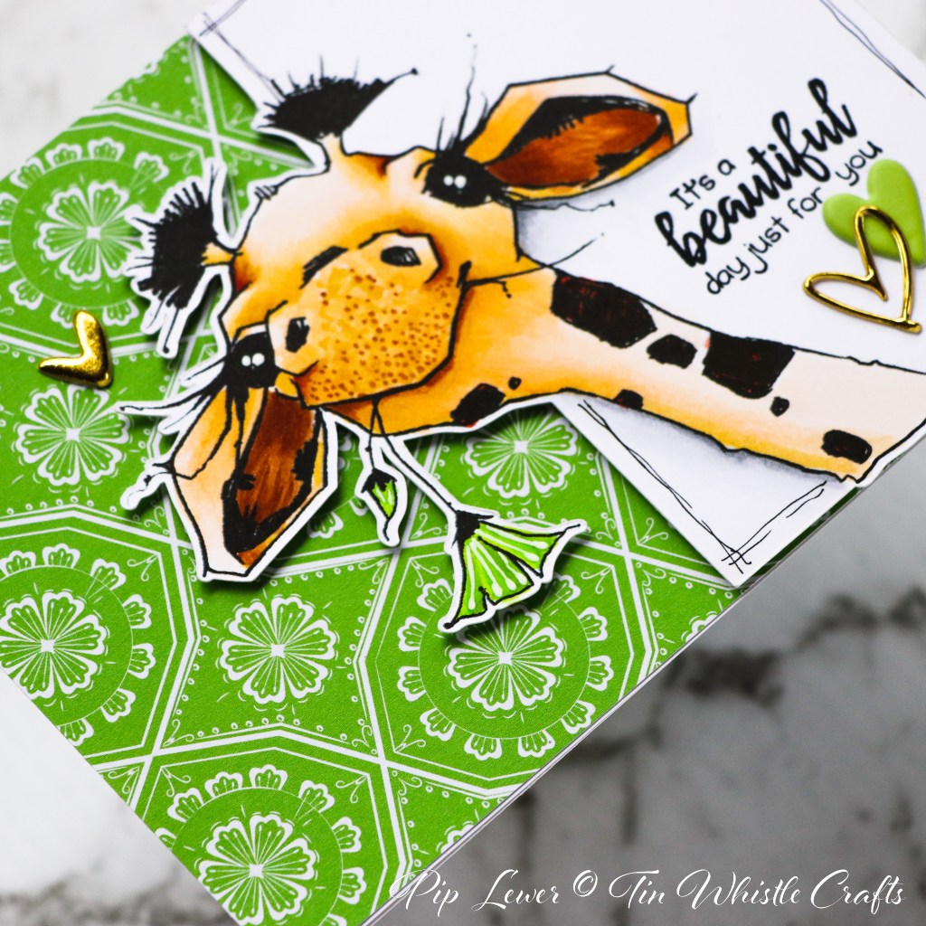 Oh Pip what a fabulous card – love that giraffe and how you have used it here, and the paper does ‘match’ the flower beautifully