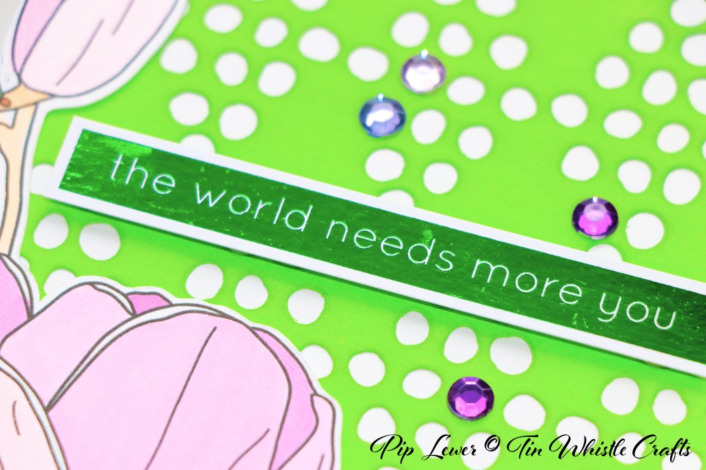 What a beautiful card Pip – I love it – the purples against the green are stunning