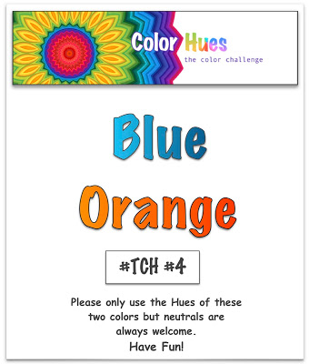 Here’s another new to me card challenge – Color Hues – The card challenge. For this challenge we have to use Blue and Orange. I’ve decided to start on my Christmas card production although this could be used for birthdays too…or any celebration for that matter.
