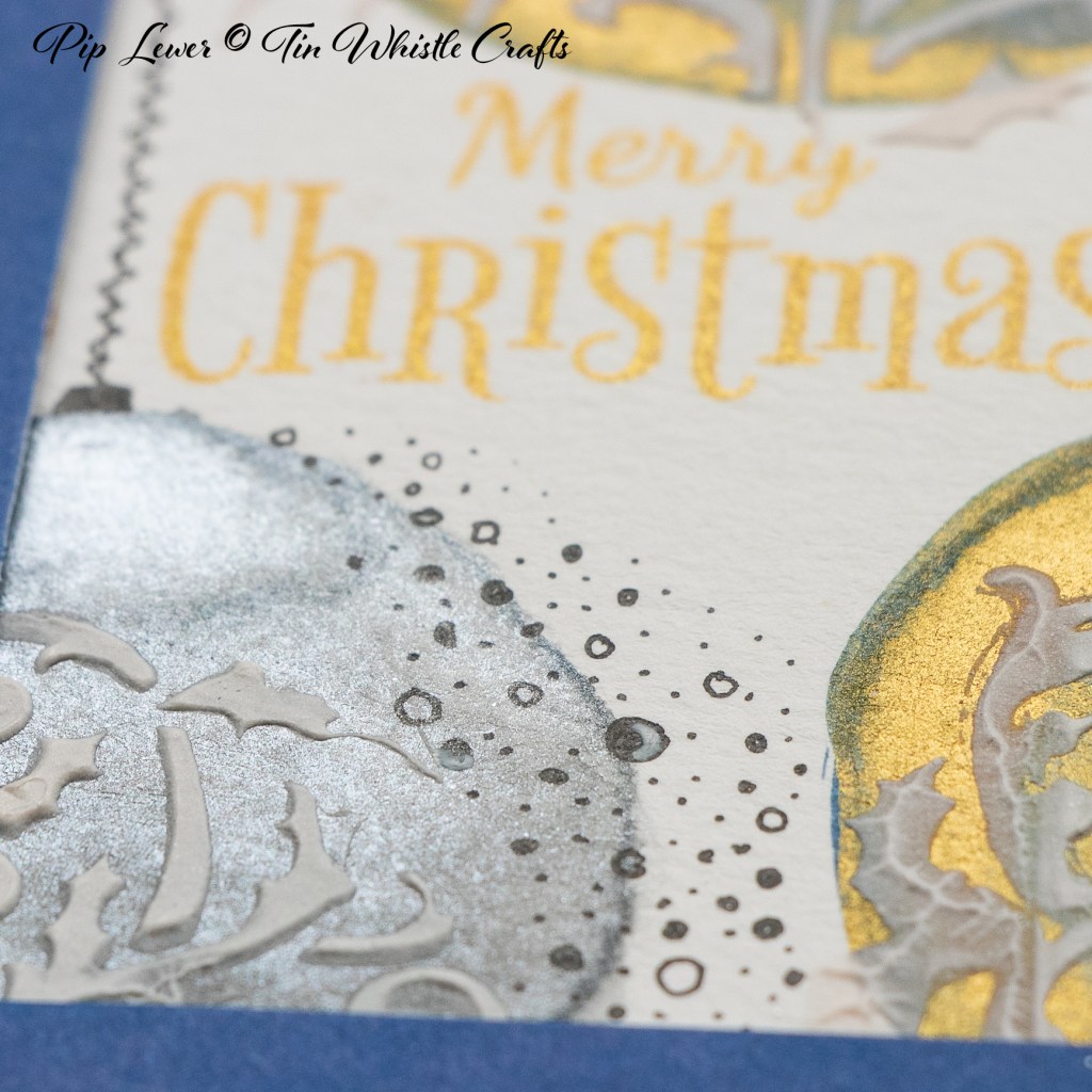 - Make sure everything is completely dry and start doodling. I did this in three places on the card making sure I doodled onto the baubles as well as the blank background.