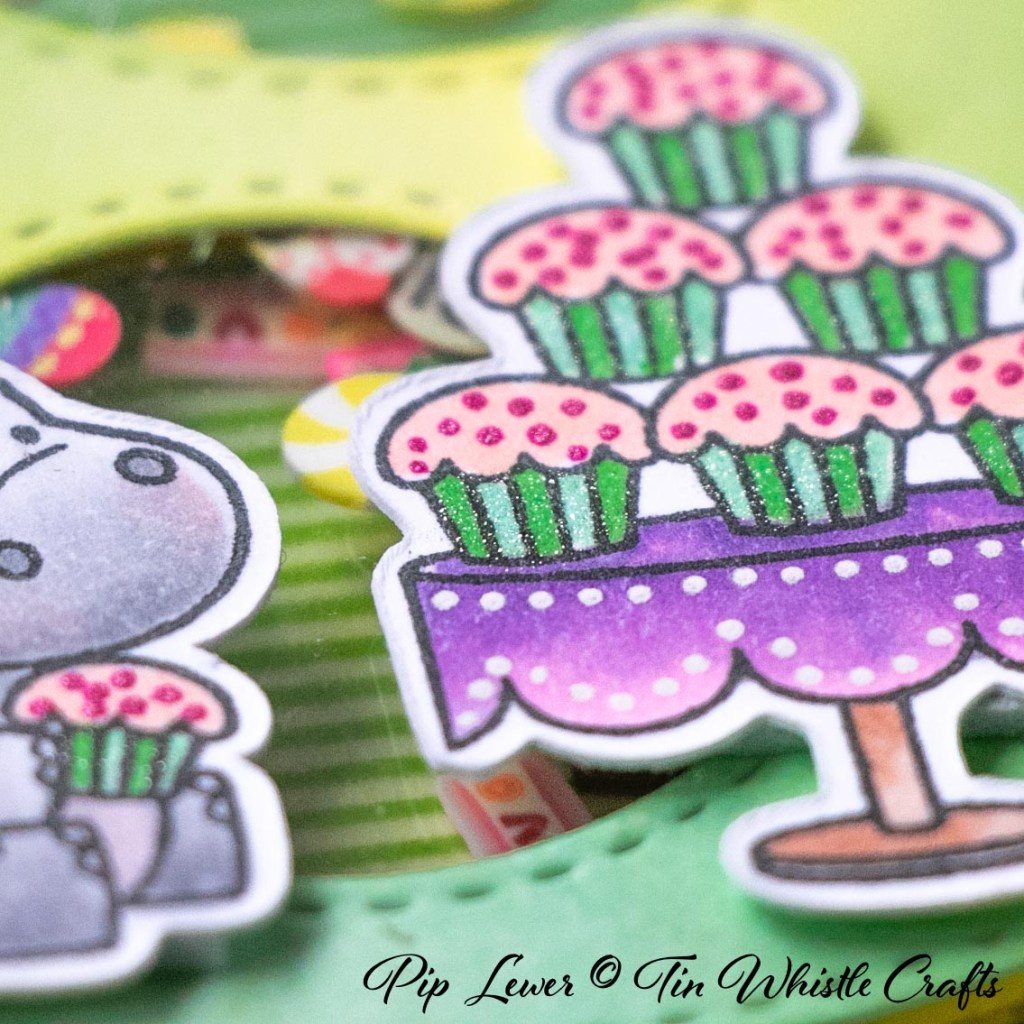 Note: You could rub the inside of the shaker pocket with anti static powder to make the sprinkles move freely. I didn’t do this and you can see how some elements have stuck to the acetate (right hand photo above), but it also gives it a more dimensional look and these particular sprinkles still moved ok.