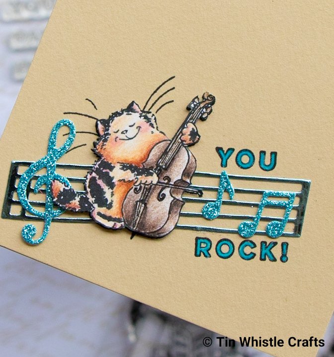 - Using Lawn Fawn Little Music Notes die set, diecut the notes out of glitter cardstock.