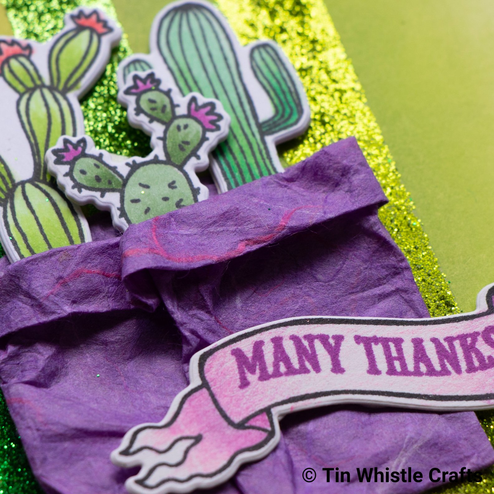 Adhere the bag and cactus with the sentiment last.